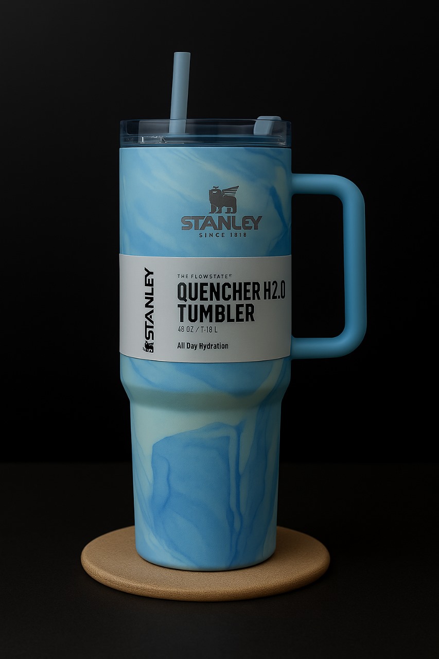 Sky Blue & Pastel Swirl – “Sip with a sky vibe.”